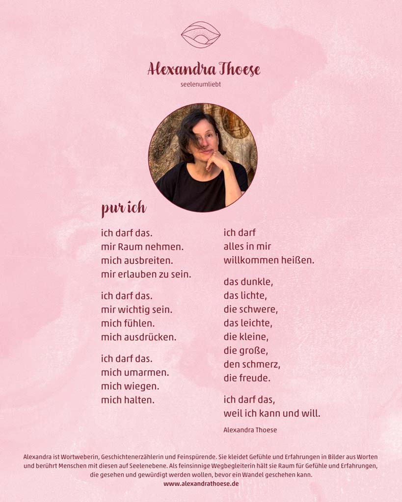 Alexandra und Lisa laden dich in die Jurte am Ellenbach ein. Dich erwartet berührende und gefühlvolle Seelenposie von Alexandra. Die Jurte, der Garten, die Wiesen und der Wald sorgen für eine wunderschöne Atmosphäre der Geborgenheit und Wärme.